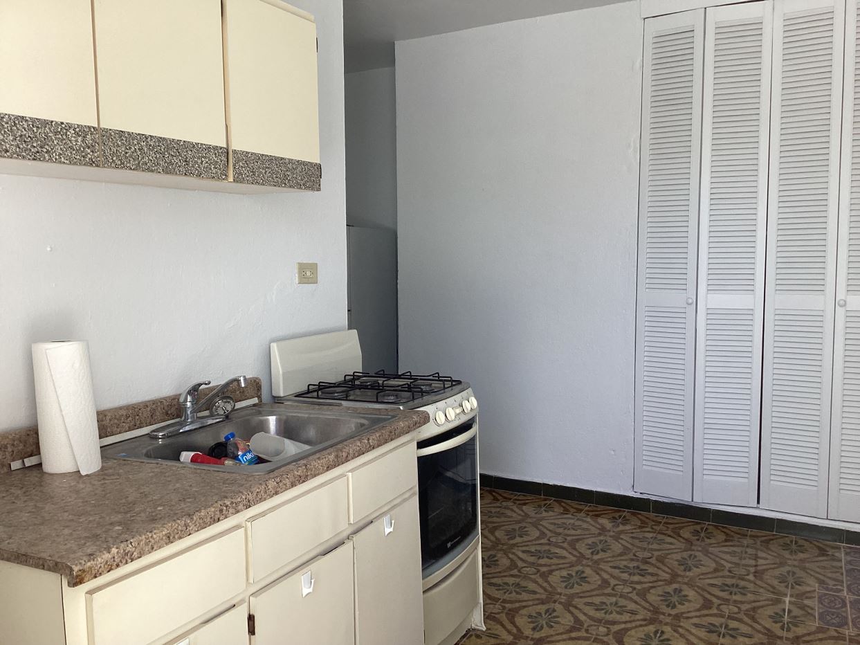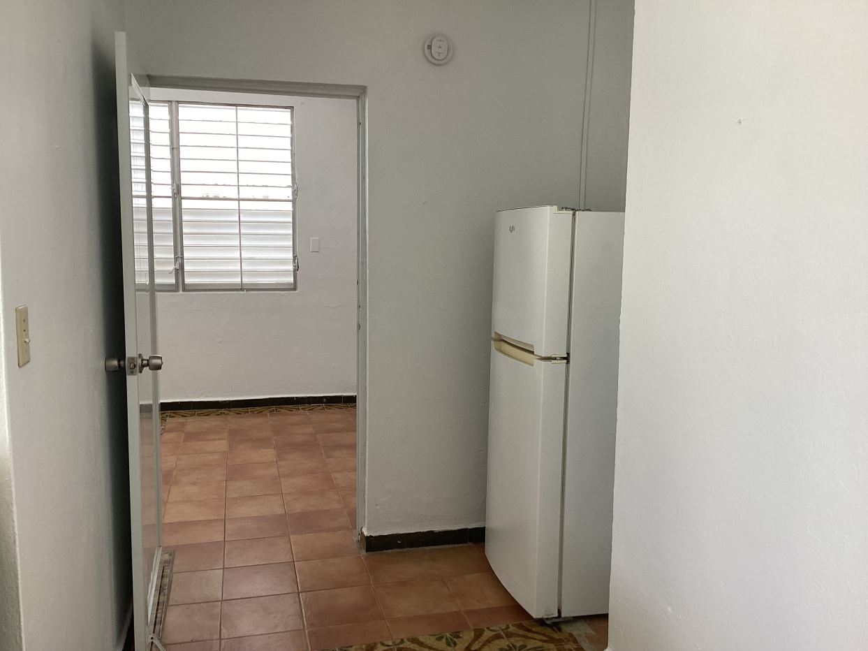 One-bedroom, one-bathroom apartment with a kitchen that includes a stove and refrigerator. Rent includes utilities (water/electricity). Located in a quiet area in the Reparto Metropolitano neighborhood near main avenues, it’s available for occupancy. It’s located on the back of the property on the first floor, where there’s also a laundry area with a coin-operated washer/dryer.